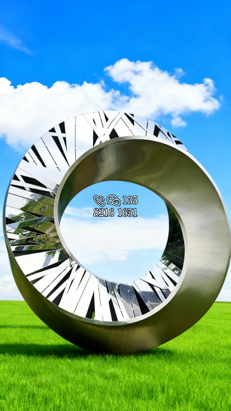鏡面不銹鋼鏤空異形圓環(huán)雕塑