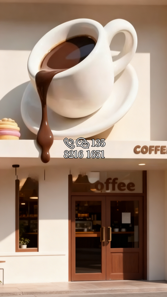 餐廳門頭造型,半透明,不發(fā)光,外部打光,長6米多,高近3米,進深2米多。