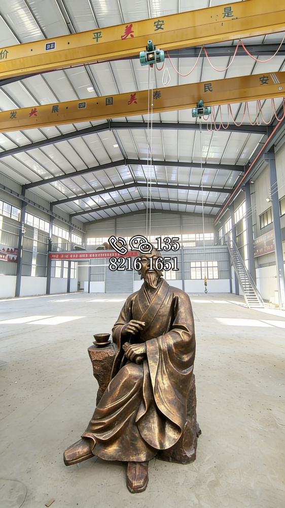 冉雪峰,湖北省中西醫(yī)會(huì)第一屆正會(huì)長(zhǎng),出生于醫(yī)藥世家,12歲起隨父采藥,同時(shí)習(xí)醫(yī)。17歲開(kāi)診于故里,38歲懸壺于湖北武昌。雕塑高1.68米,玻璃鋼仿銅效果。