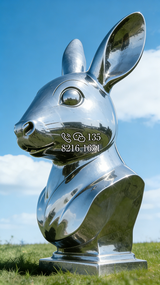 不銹鋼 鏡面 十二生肖 動物 兔子 兔頭 胸像