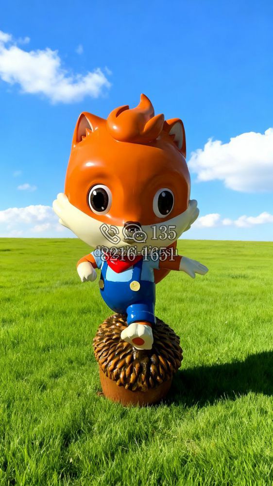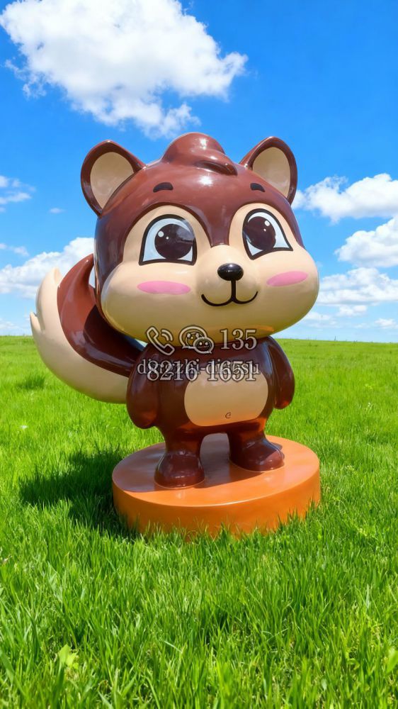 踩在松果上的玻璃鋼卡通松鼠雕塑