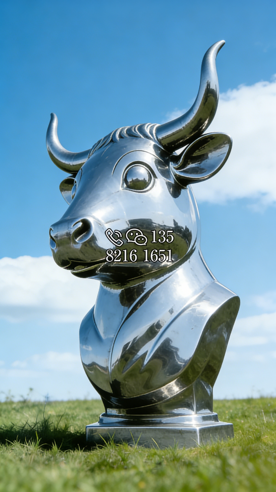 不銹鋼 鏡面 十二生肖 動物 水牛 牛頭 胸像