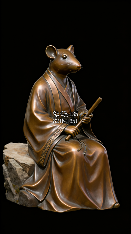 獸首人身鑄銅生肖子鼠雕塑