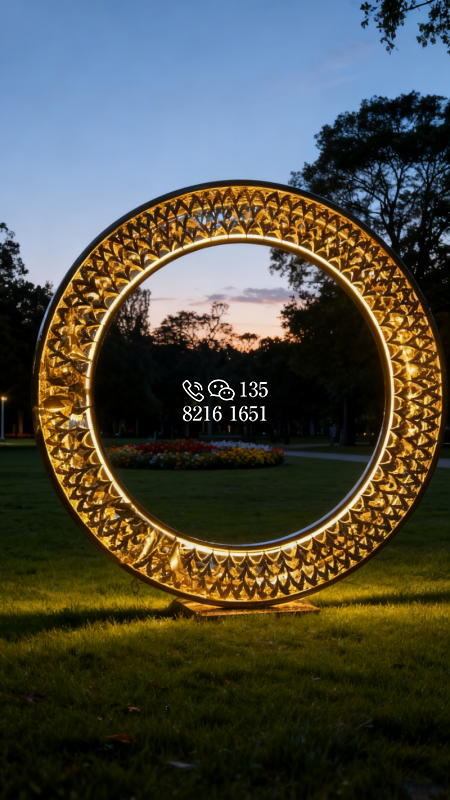 鏤空不銹鋼發(fā)光圓環(huán)雕塑