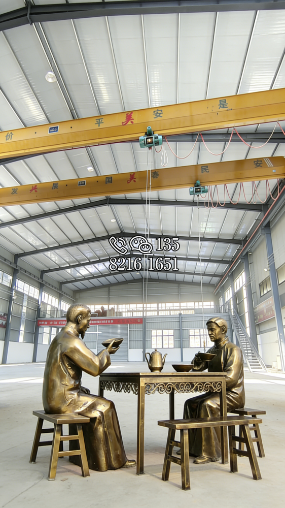 喝茶人物銅雕