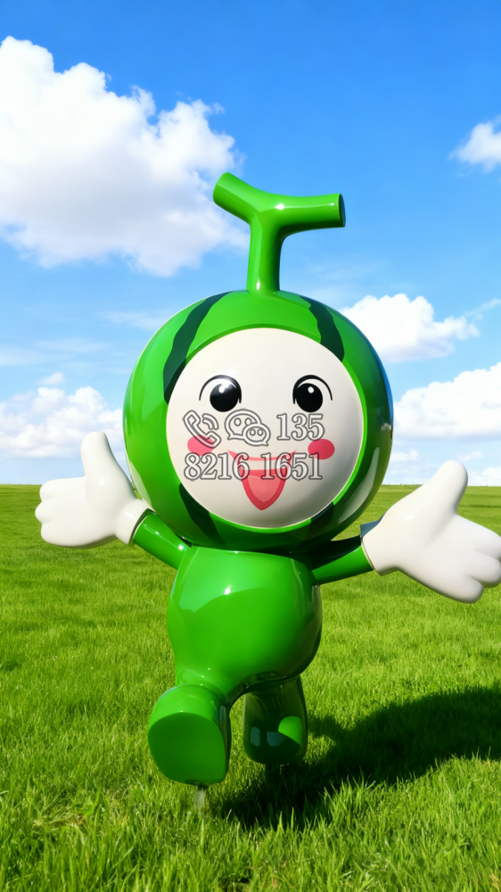 張開雙手奔跑的卡通西瓜公仔