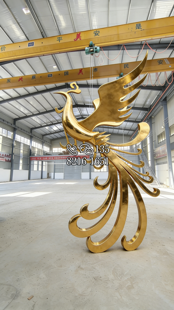 抽象不銹鋼鳳凰雕塑 (2)