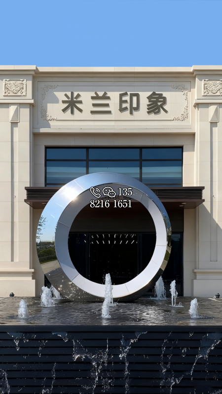 地產(chǎn)噴泉不銹鋼鏡面圓環(huán)雕塑