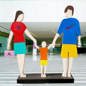 一家三口購物 鐵藝商場美陳擺件 剪影