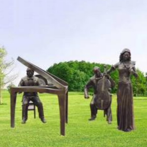 仿銅演奏人物 彈鋼琴 拉大提琴小提琴