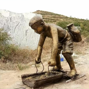 撈魚 玻璃鋼仿銅小孩童趣系列